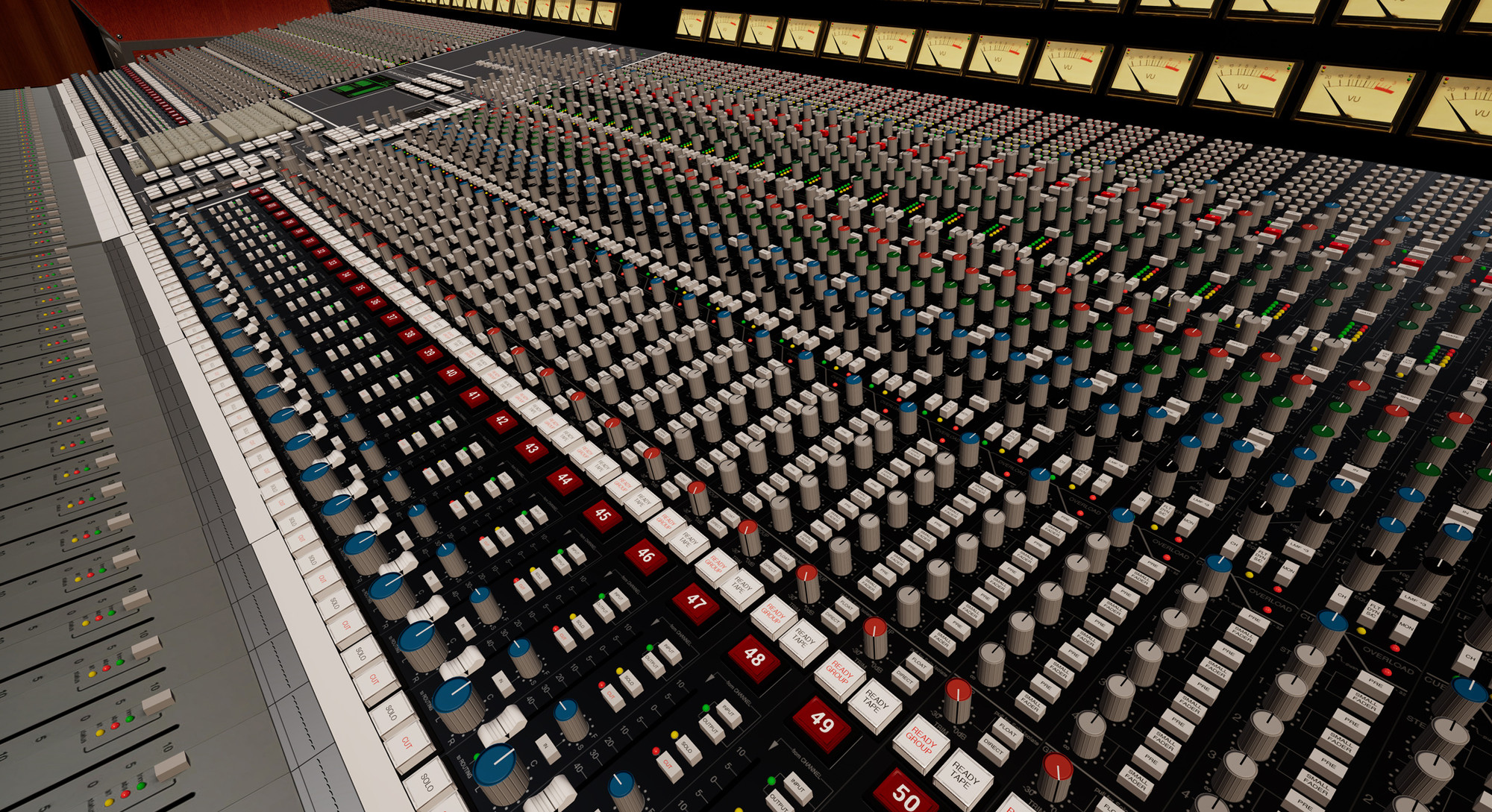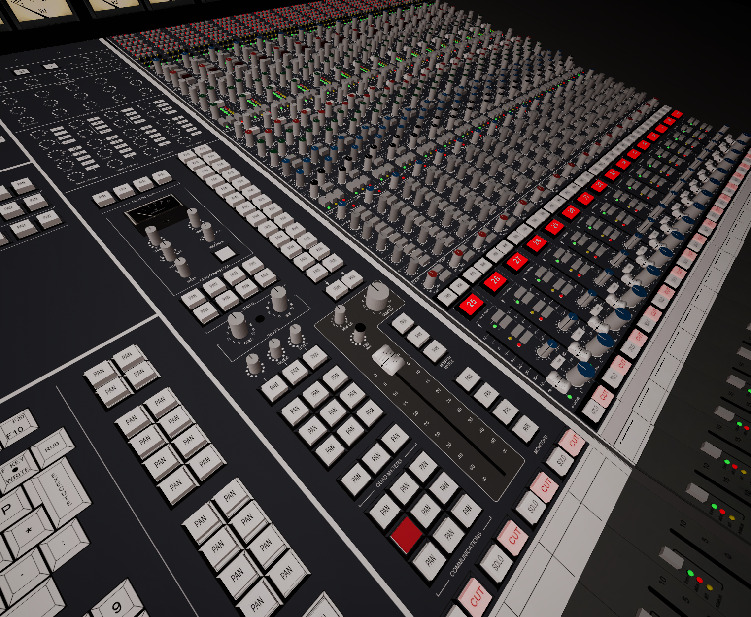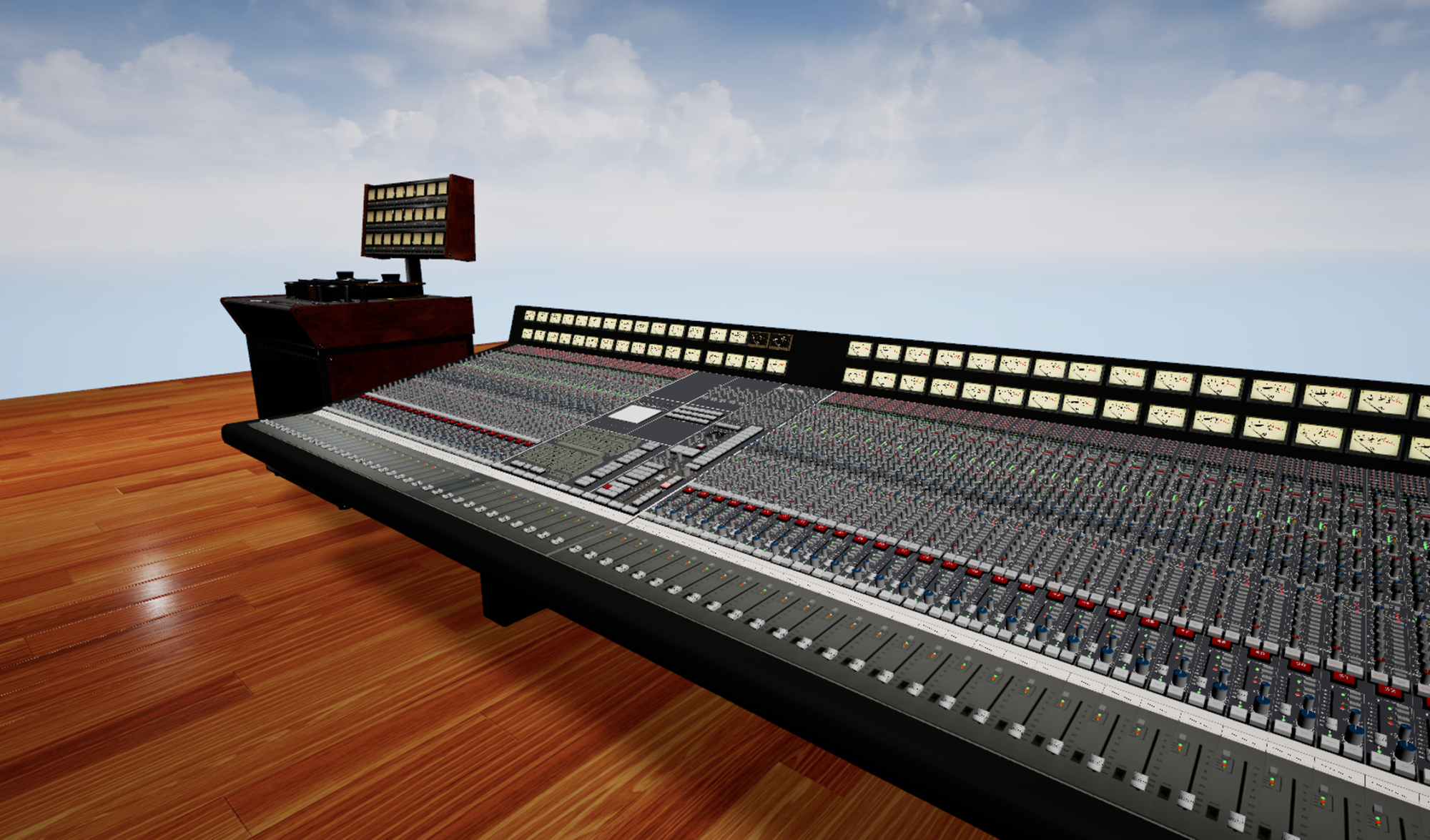 Reworked a lot of stuff on the console and added compression, filters, aux sends on each channel just because the every button in sight should function like it should to make it feel real. Added equipment and functions like reverb, delay, flashing lights. On the scribble strips with color you can write track info on each channel, which makes it at least 2x as cool as before.
