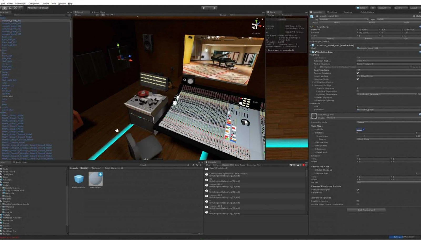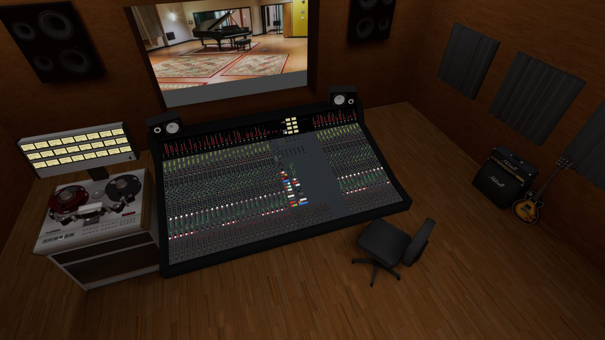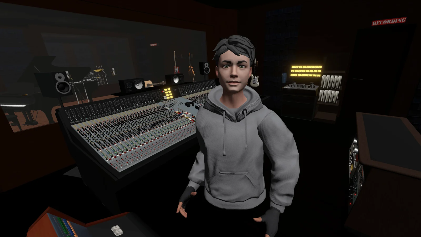 Also the studio is starting to look a lot like a real studio. Got most of my VR setup as I wanted and expanded a lot of the studio design with an asset pack that is very inspiring. Although the existing console and multitrack were not nearly near the quality as mine, the rest is quite good. Even outboard is sometimes usable, which will save a lot of modeling work.